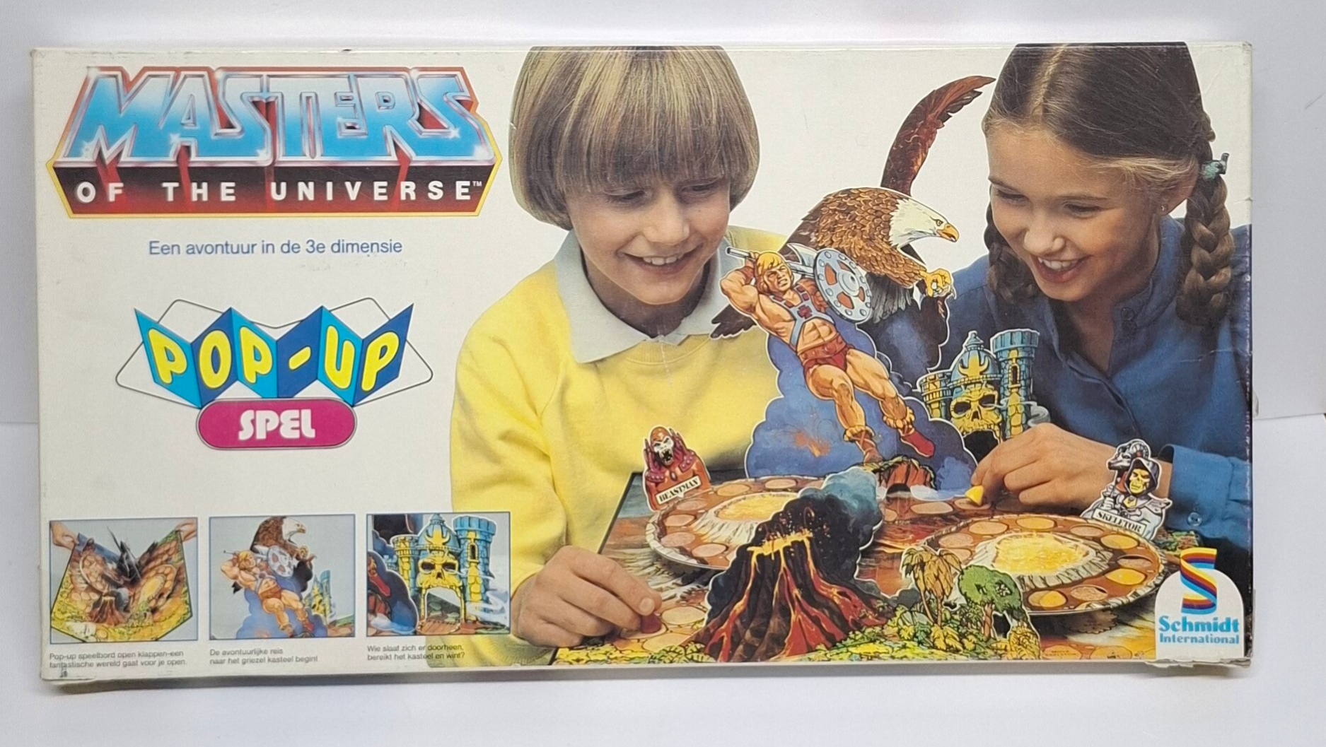 Dit is een vintage Masters of the Universe Pop-Up spel uit de jaren 80. Het bordspel werd in 1984 in Nederland uitgebracht door Schmidt International.
