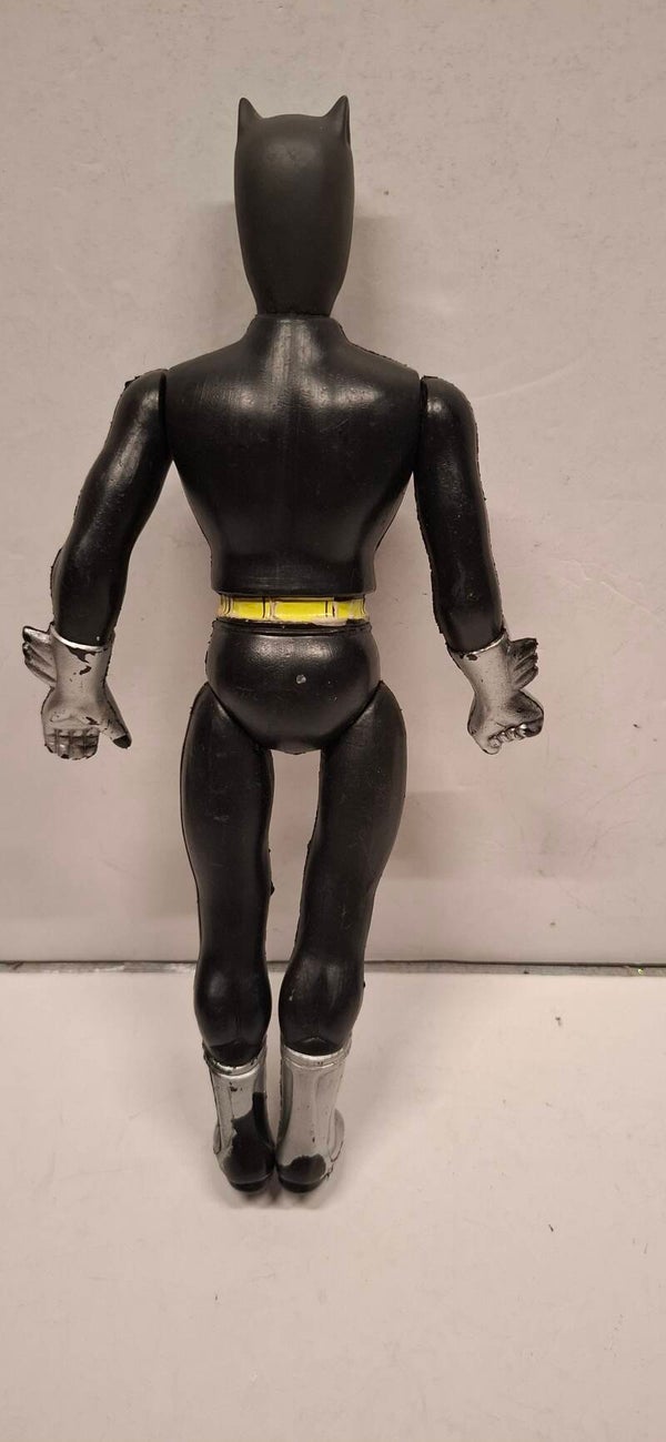 Dit is een vintage Batman "bootleg" actiefiguur, een niet-geautoriseerde kopie die waarschijnlijk uit de jaren '80 of '90 stamt.