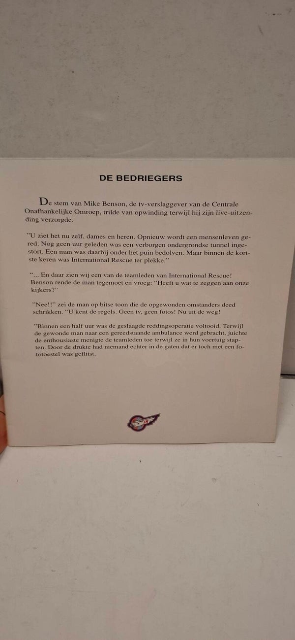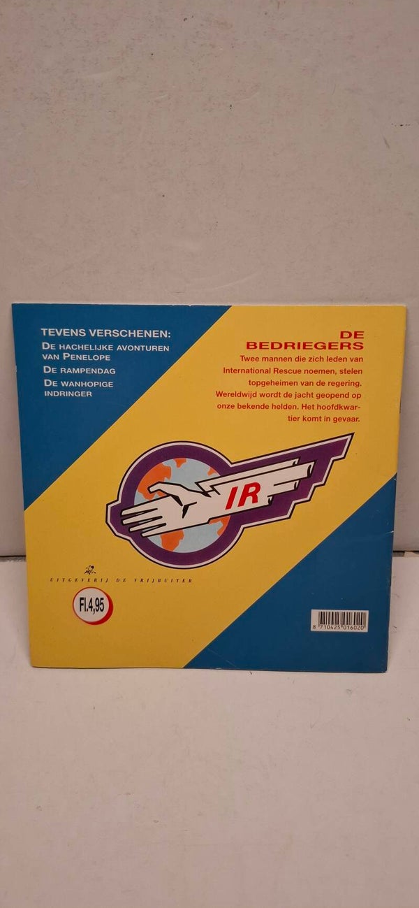 Dit is een exemplaar van het Thunderbirds leesboekje "De Bedriegers" (Deel 3), een Nederlandstalige uitgave van Uitgeverij De Vrijbuiter uit 1992.