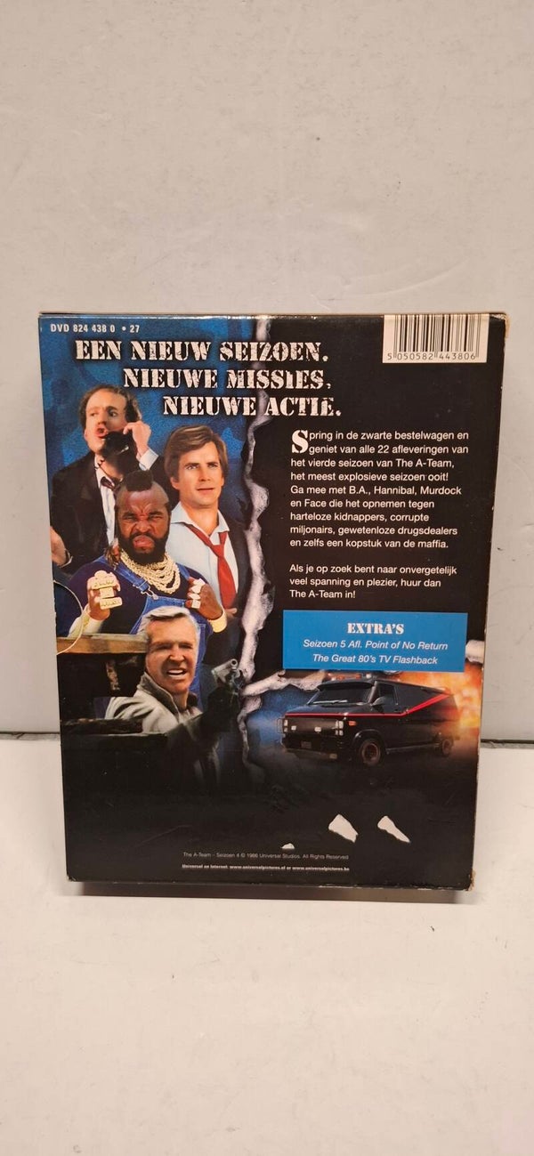 Dit is een dvd-box van de iconische actieserie The A-Team, specifiek Seizoen Vier. De set bevat alle 22 afleveringen van dit actievolle seizoen, dat oorspronkelijk in 1985 werd uitgezonden.