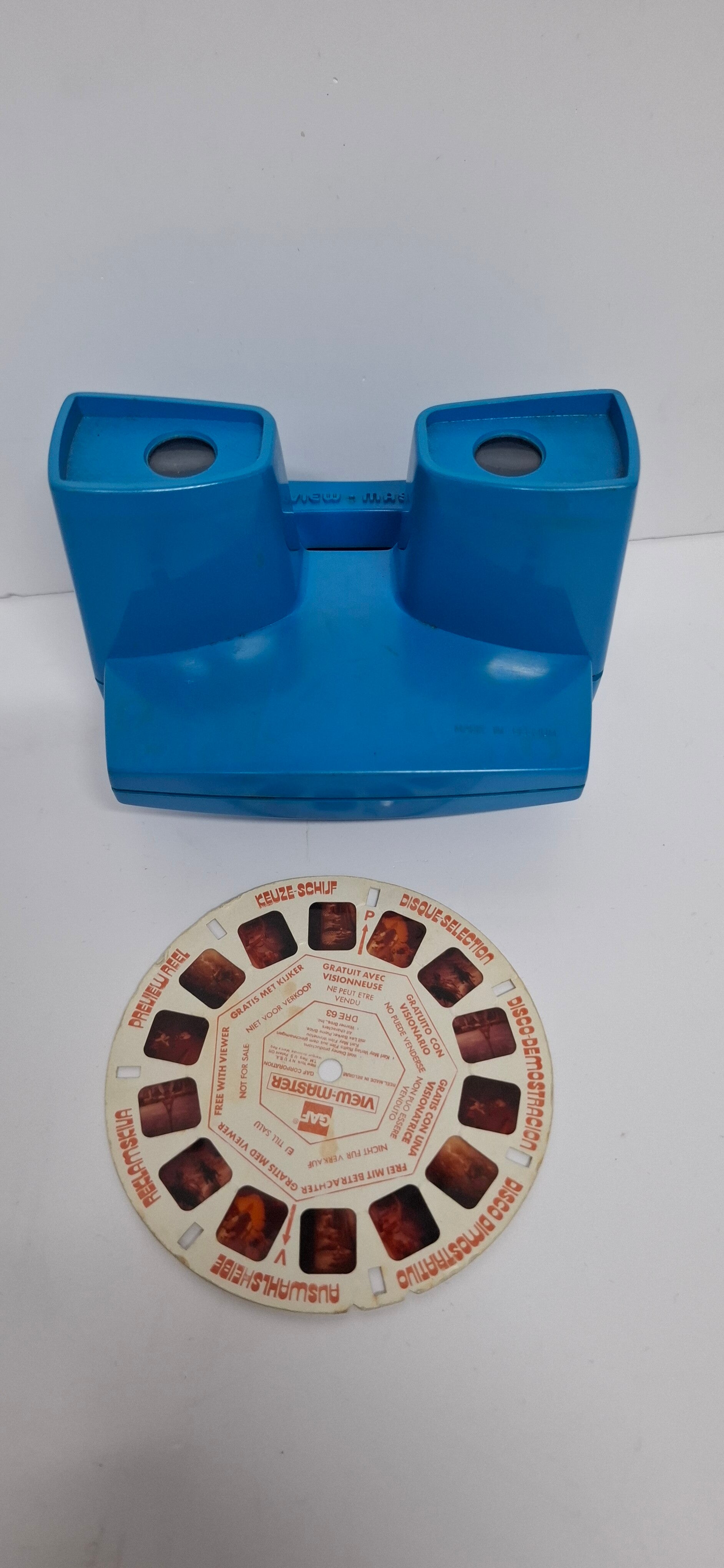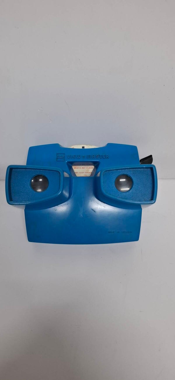 View-Master Model J, een iconische 3D-beeldkijker. Dit specifieke model werd geproduceerd tussen 1975 en 1994 door GAF en werd uitsluitend in België gefabriceerd voor de Europese markt.
