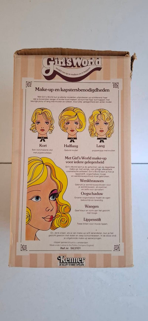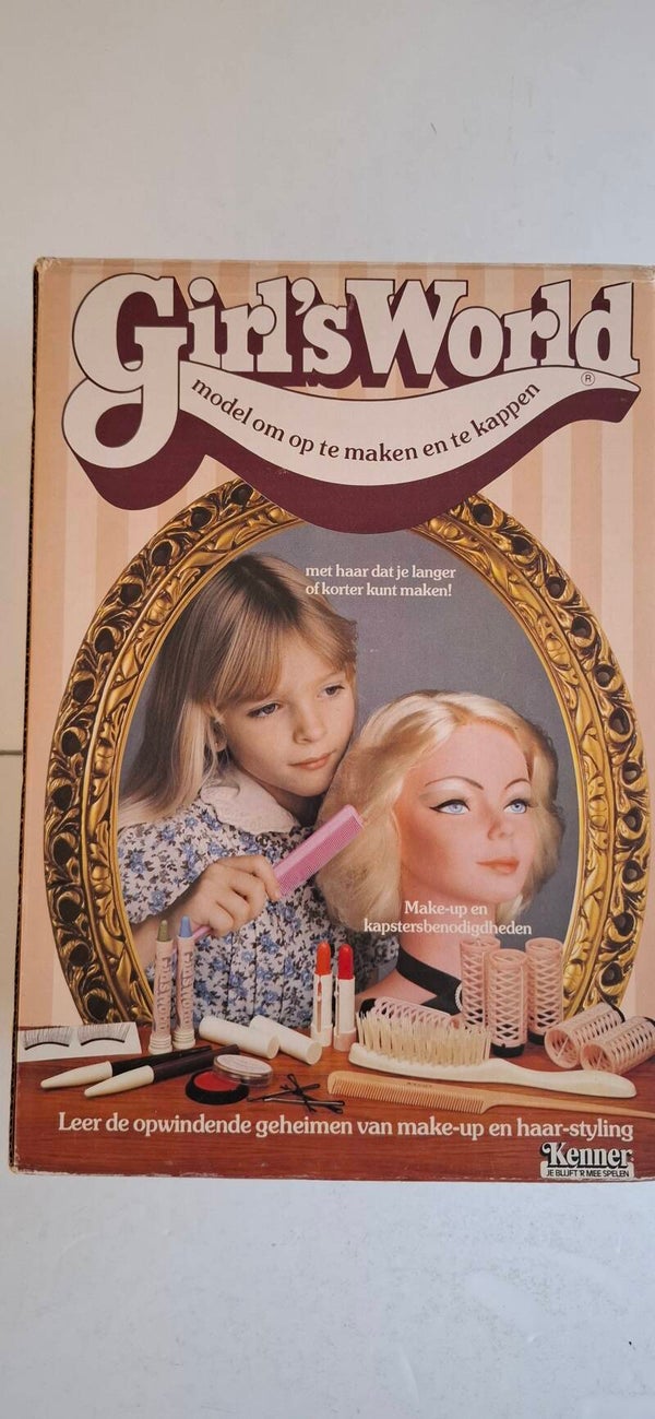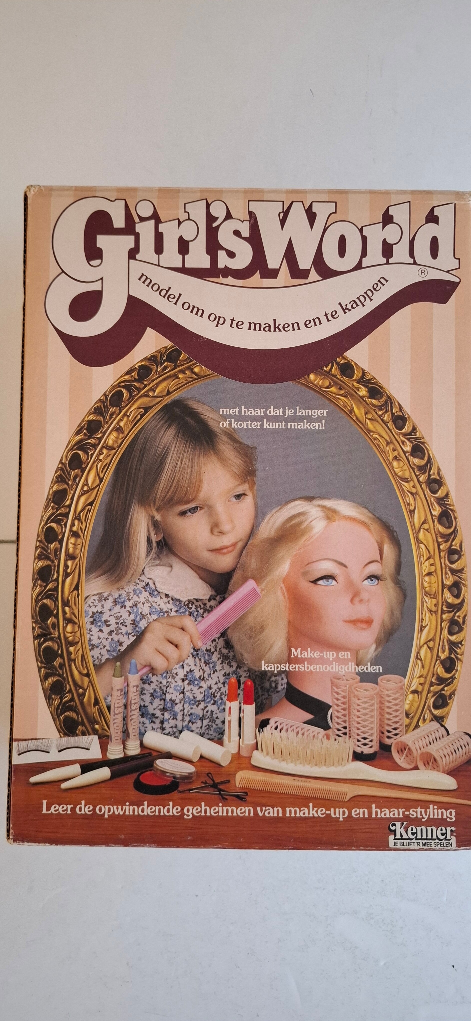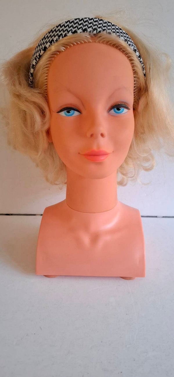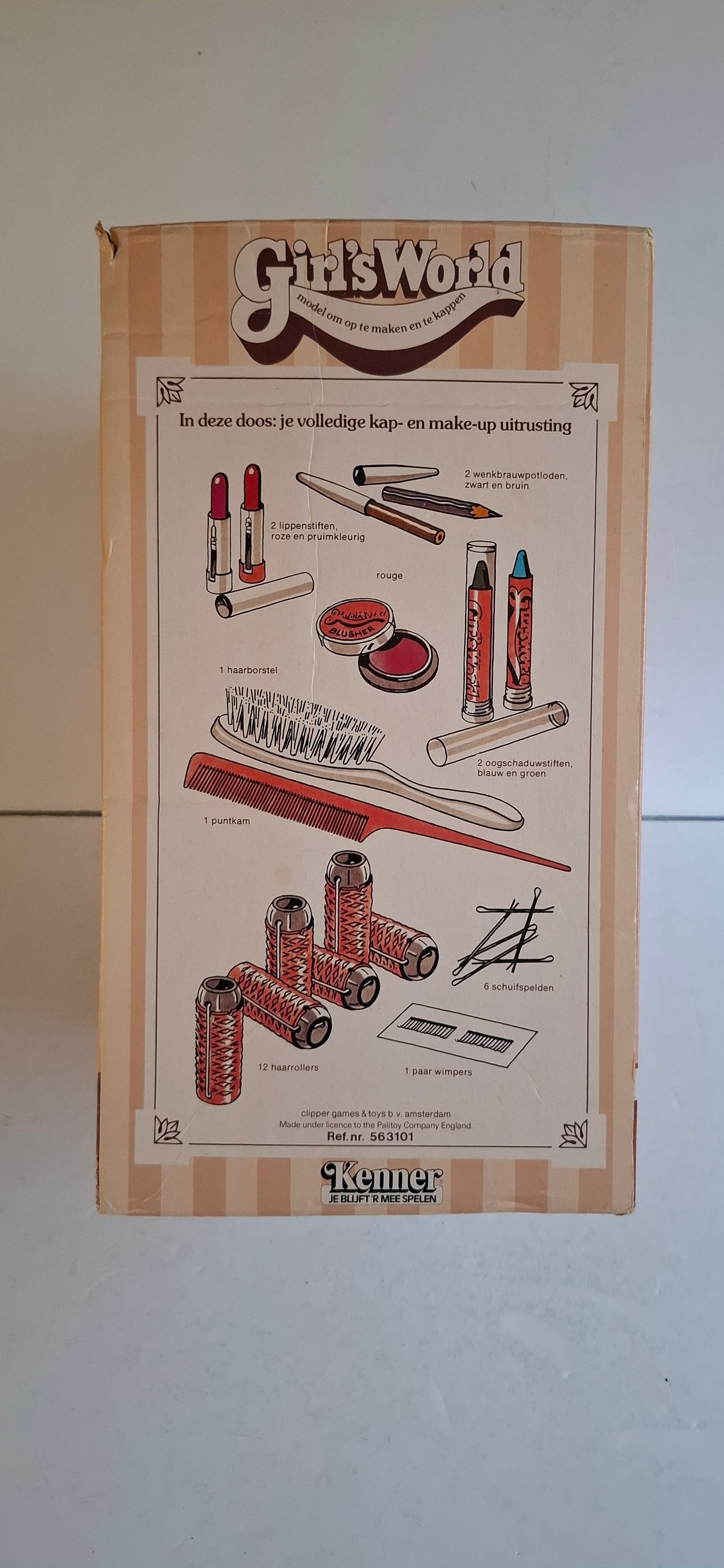 Dit is een vintage Girl's World opmaak- en kapprofiel (styling head), een populair speelgoed uit de jaren '70 en '80.
