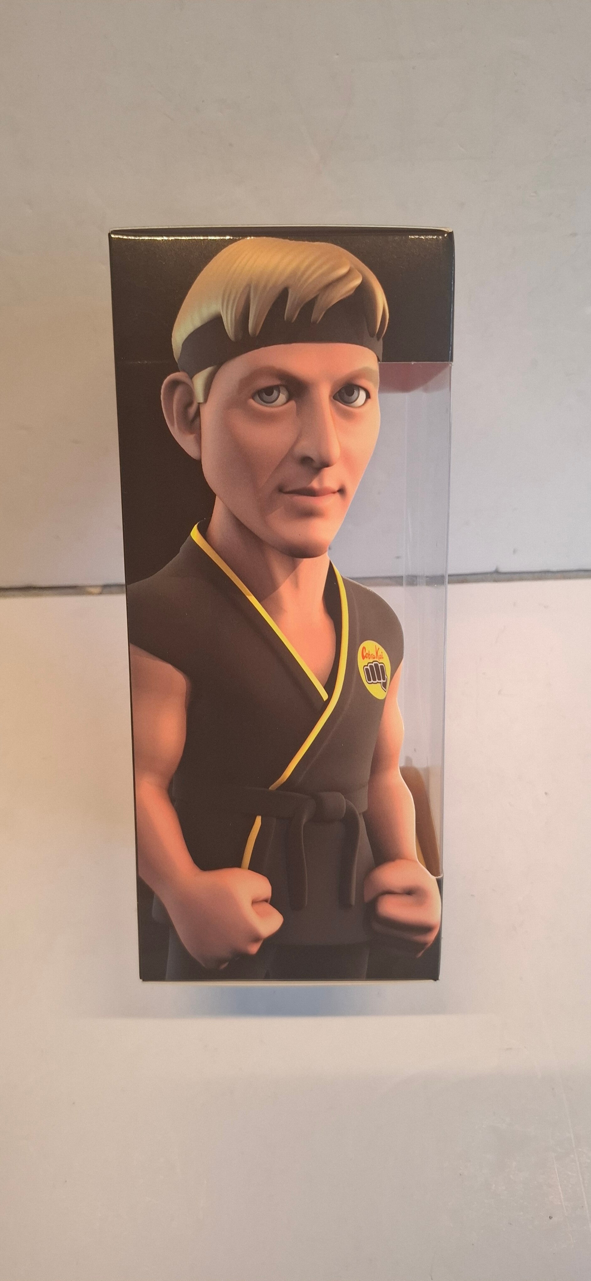 Dit is een verzamelfiguur van Johnny Lawrence uit de populaire Netflix-serie Cobra Kai, geproduceerd door MINIX Collectible Figurines.