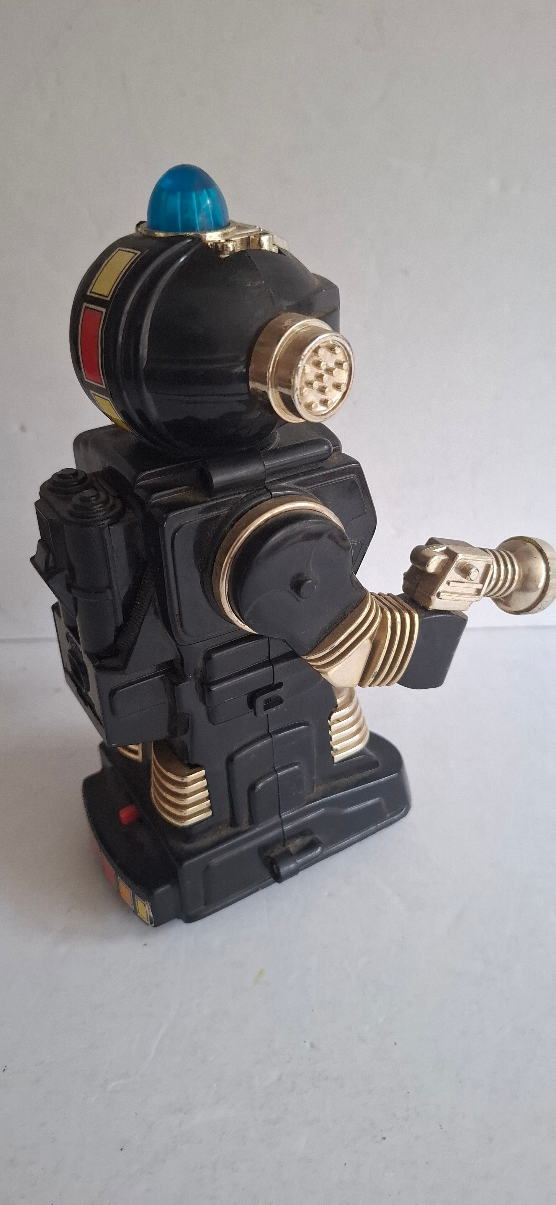 Beweging: De robot heeft een beweegbaar hoofd en armen die op en neer gaan terwijl hij een (vaak verwijderbaar) lichtgevend straalpistool vasthoudt.