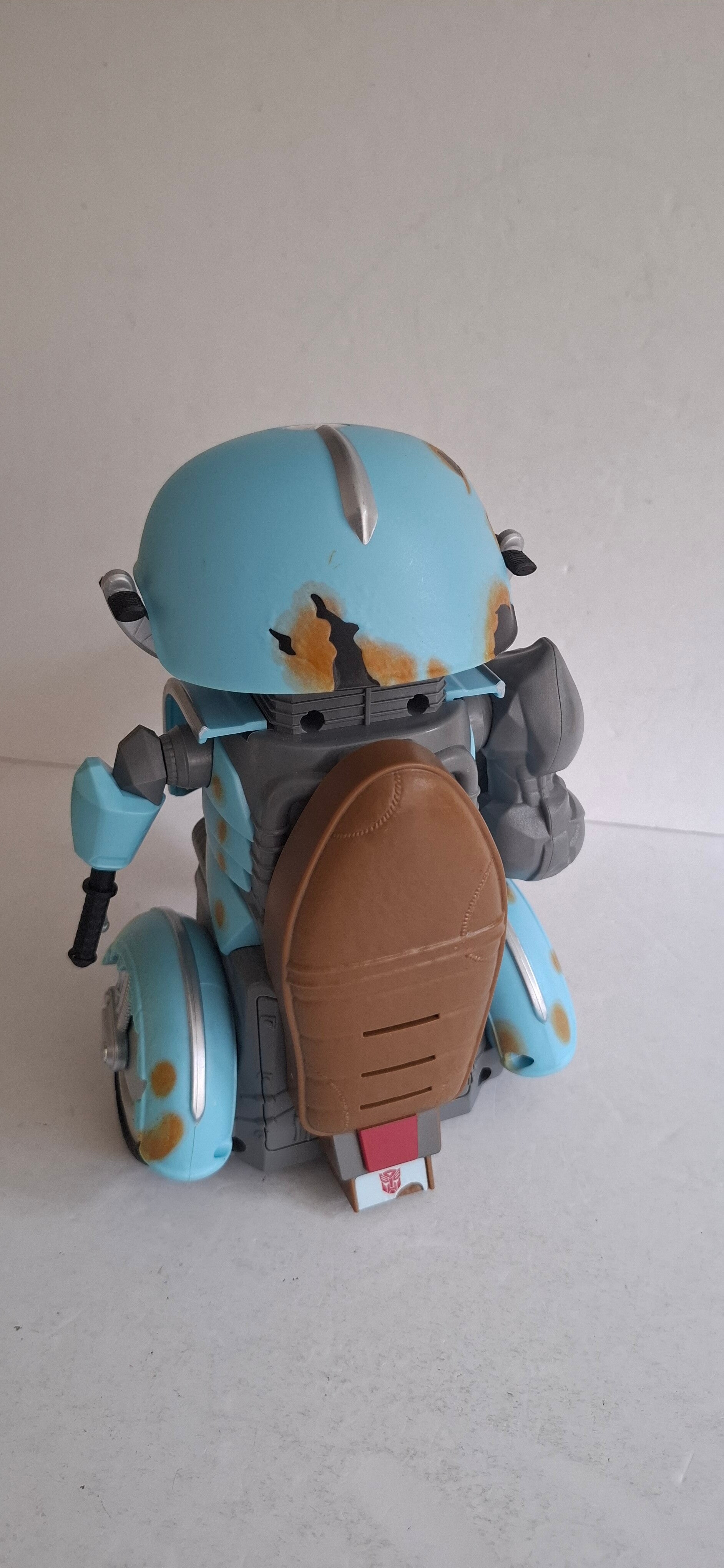 Sqweeks is een kleine, loyale Autobot die eruitziet als een verweerde lichtblauwe scooter. Het model op de foto heeft het kenmerkende "roest-effect" en wordt geleverd met de bijbehorende afstandsbediening en een groot blaster-accessoire.