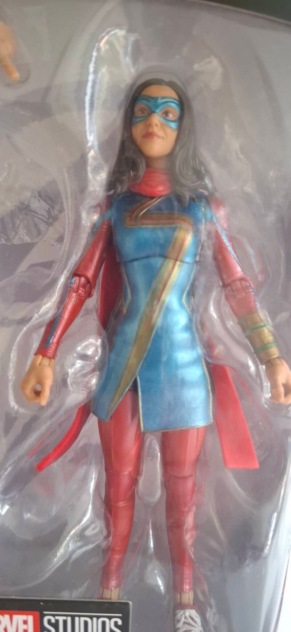 actiefiguur van Ms. Marvel (Kamala Khan) uit de Hasbro Marvel Legends Series. Dit specifieke figuur is geïnspireerd op haar verschijning in de Disney+ serie Ms. Marvel uit 2022.