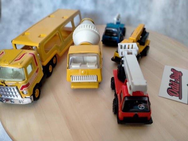 setje tonka vrachtwagens en een BuddyL vrachtwagen