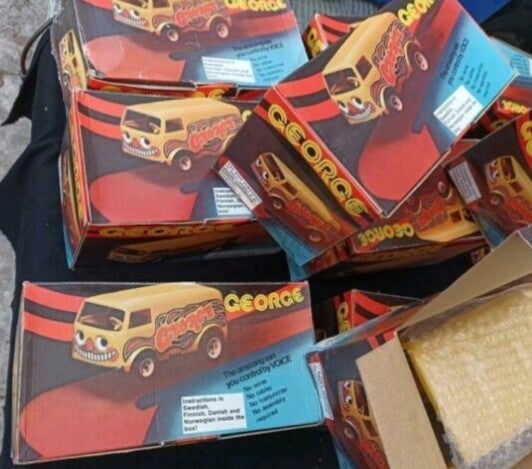 George werd geadverteerd als een spraakgestuurde vrachtwagen waarnaar je instructies kon schreeuwen en George zou plichtsgetrouw gehoorzamen. De kinderen in de advertentie klapten vrolijk in hun handen terwijl ze gehoorzaamden aan hun kreten van "links", "rechts", "vooruit" enz. . . Te cool! De realiteit was echter iets anders: nadat ik het technologische wonder uit de doos had gehaald, de 37 steenachtige batterijen had geplaatst en aangezet, was er altijd een prikkelend besef dat de wereld een wrede plek is. . . De 'spraakgestuurde' George had eigenlijk een klein wiel in het midden dat 90 graden met de klok mee bewoog elke keer dat er geluid van meer dan 100 decibel werd gemaakt - ongeveer net zo controleerbaar als een winkelwagentje in een supermarkt!