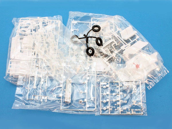Schaalmodel (1:25) van de beroemde Chevrolet uit 1957, dit keer in de 150 Utility sedan uitvoering. Dit was een lichtere en goedkopere uitvoering van de Bel Air. Het model kan als standaard sedan of als de beroemde "Black Widow" drag racer met Fuel Injection gebouwd worden. Onderdelen voor beide uitvoeringen aanwezig. Volledig ongebouwd, alle onderdelen nog gesealed in de doos die nog in goede staat is. Met gedetailleerde motor.