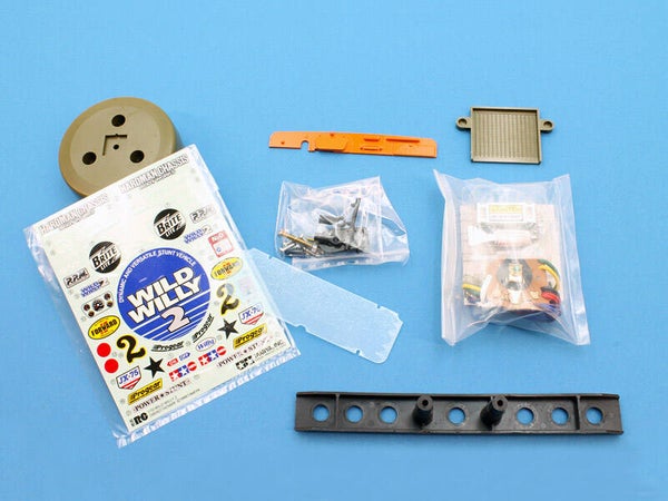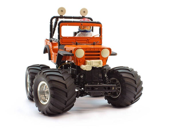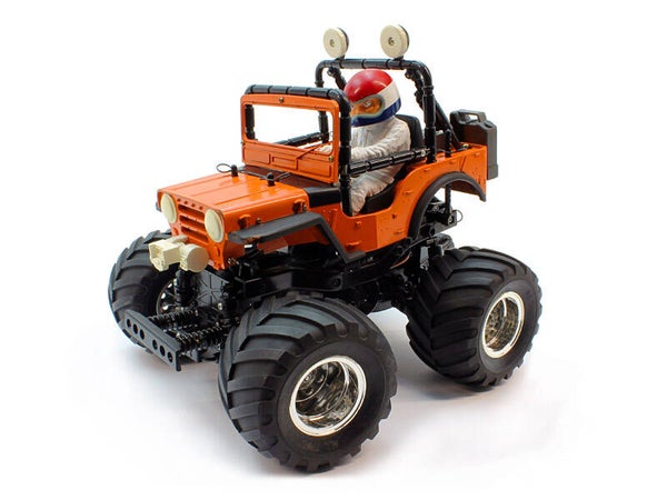 Very nice Tamiya radio controlled model of the famous Wild Willy's Jeep. The model is built and has paint scuffs from light use, but is still very presentable without dust or dirt, See also the pictures. The box is in very good condition. Included are the original assembly instructions, a few spare parts and a stock steering servo. Makes a very nice displaymodel or have fun making wheelies!